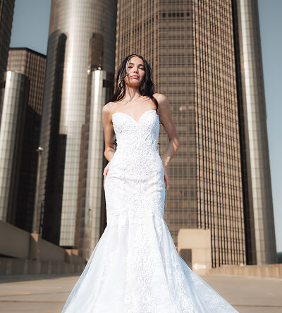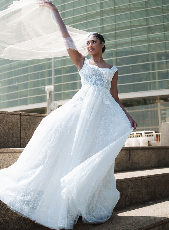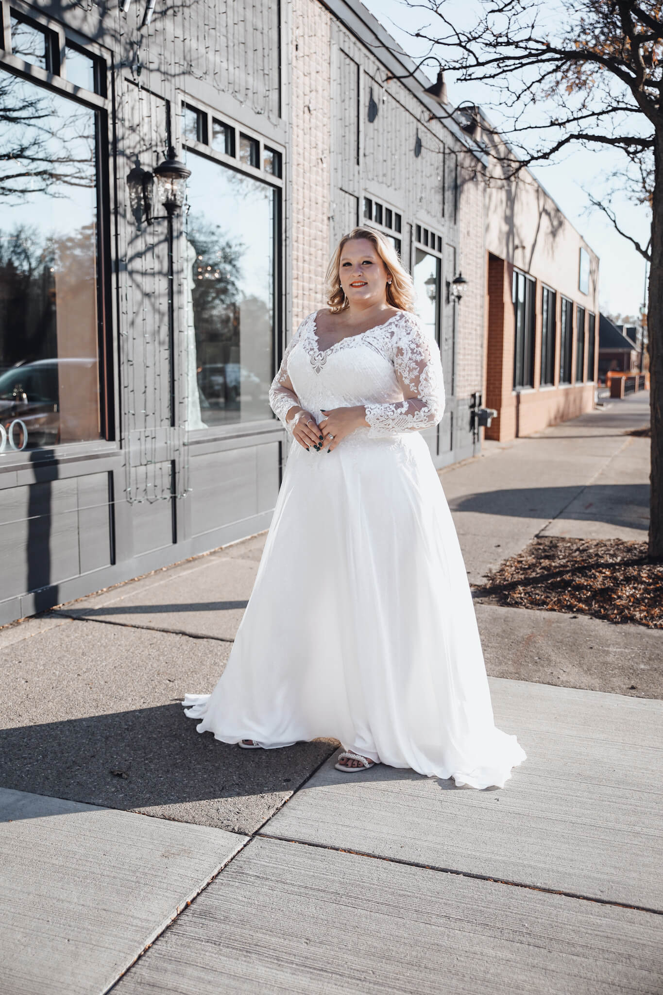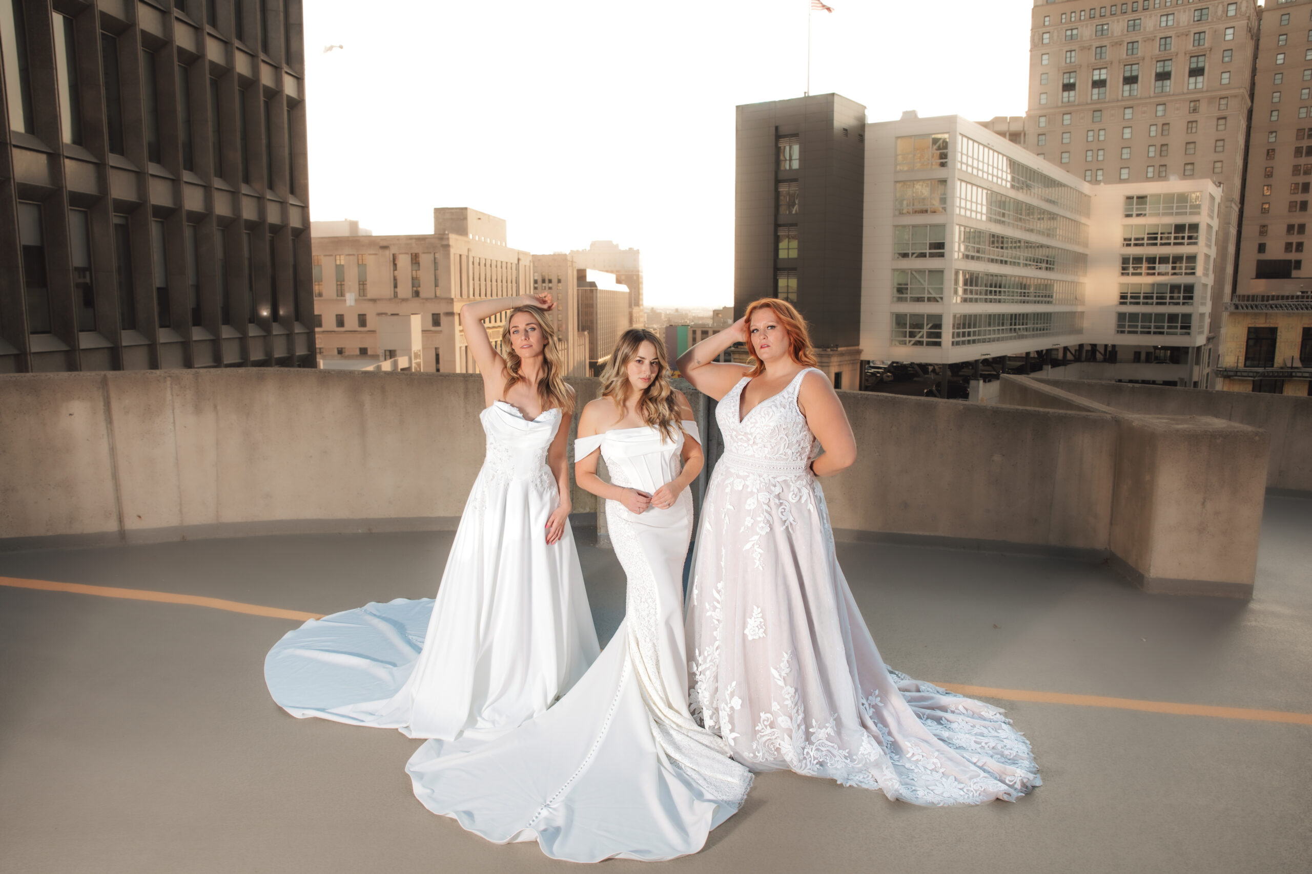 We carry sizes 4 – 38. We believe that every bride deserves to try on beautiful wedding dresses in her size.
